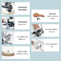 この自転車のフレームは高品質なクロモリ素材で作られており、その耐久性は抜群。軽量でありながら、強度も兼ね備え、長時間の使用でも安心です。見た目の美しさだけでなく、実用性にもこだわった一台と言えます。しっかりとした走行性能を持ち、初心者から上級者まで楽しめる設計です。