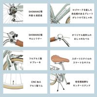 この自転車はシマノ製の外装6段変速を搭載しており、様々な道や状況に応じてスムーズにギアチェンジが可能です。上り坂でも安心して快適に走行でき、初心者からベテランまで幅広く楽しめます。デザインも機能性も兼ね備えた自転車は、日常の移動を楽しくしてくれます。