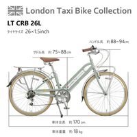 魅力的なヴィンテージスタイルの【ロンドンタクシー】London Taxi CRB266Lが登場しました。ウォームグレーとジェイドグリーン、レッドの美しいカラーリングは、街中で目を引くこと間違いなしです。26インチのタイヤサイズは、安定感と乗り心地を提供し、通勤・通学にぴったりです。